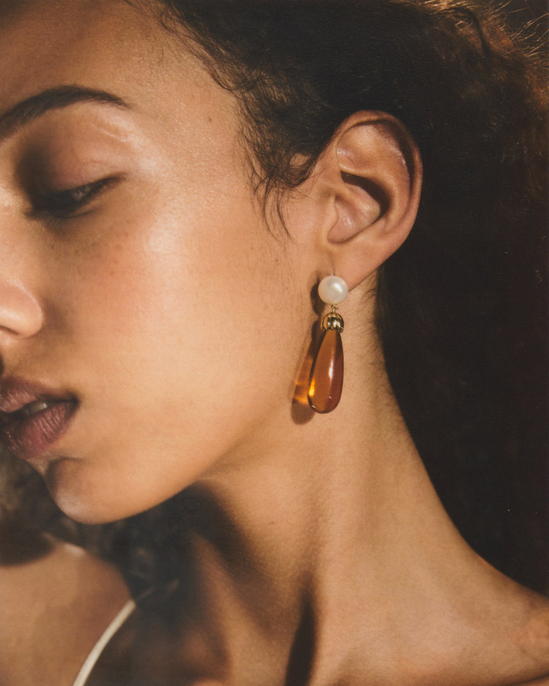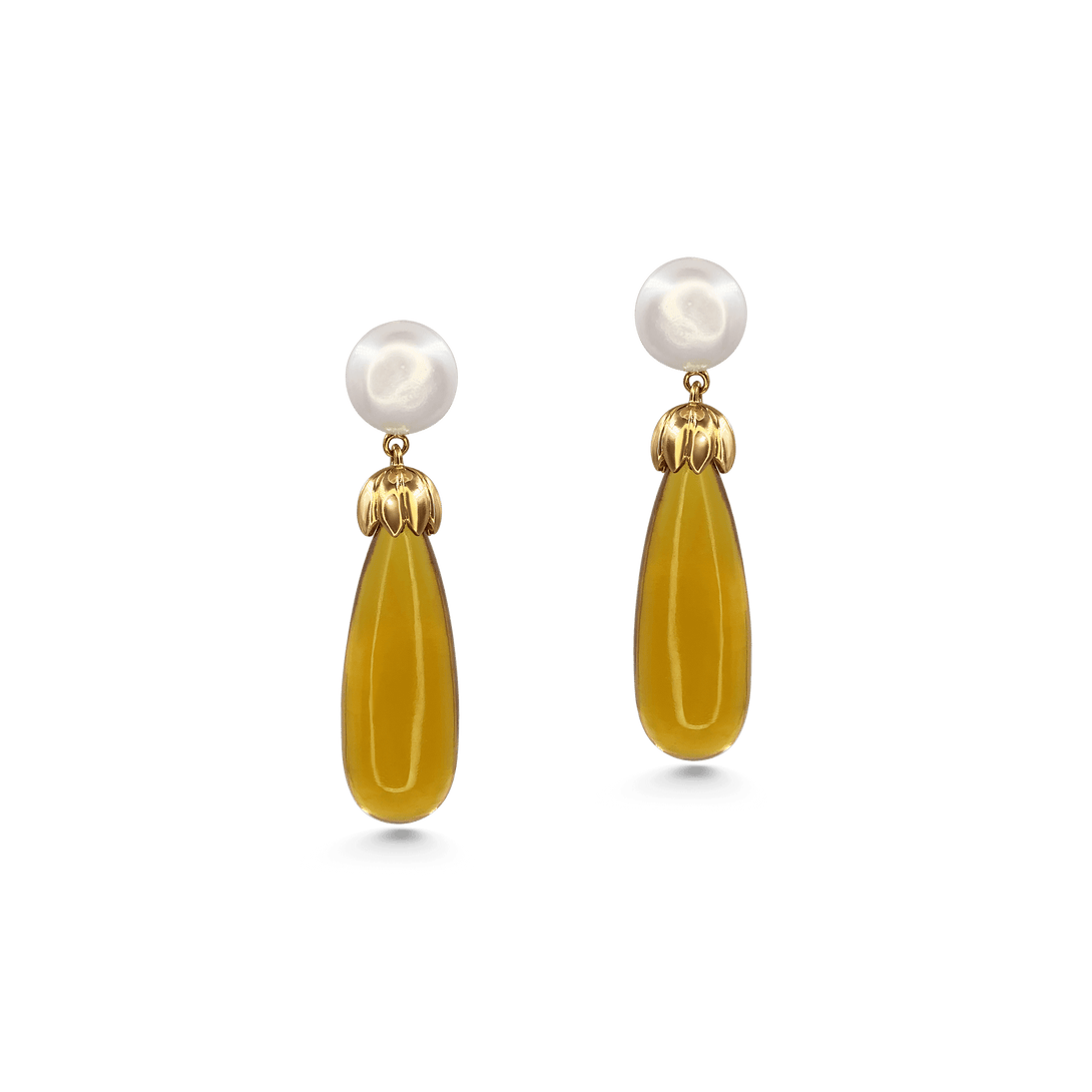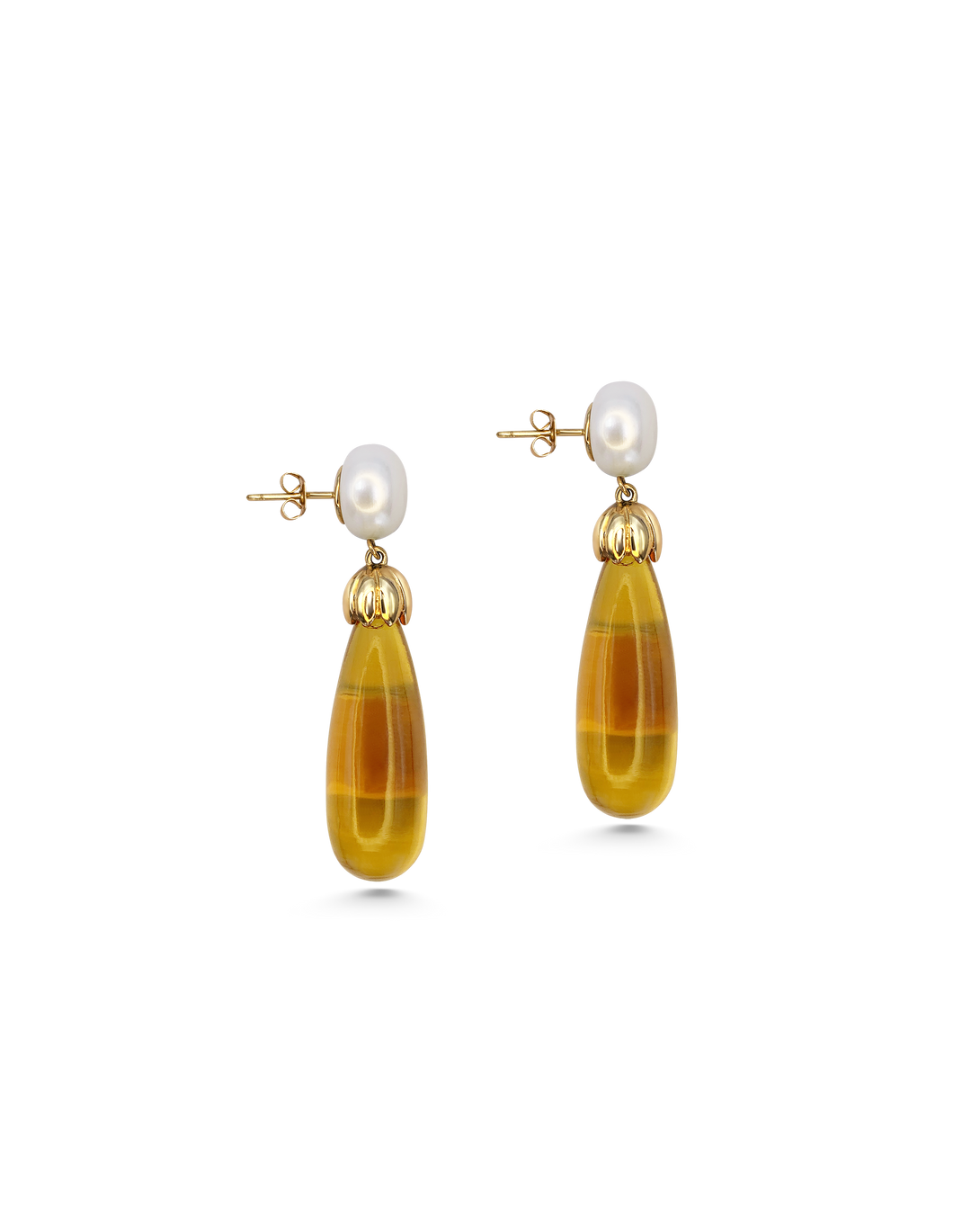 Helena brings warmth wherever she goes, or wherever you take her. Classic natural pearls are offset with warm honey-colored citrine with a comfortable butterfly back closing. They are lightweight enough to wear all evening long.