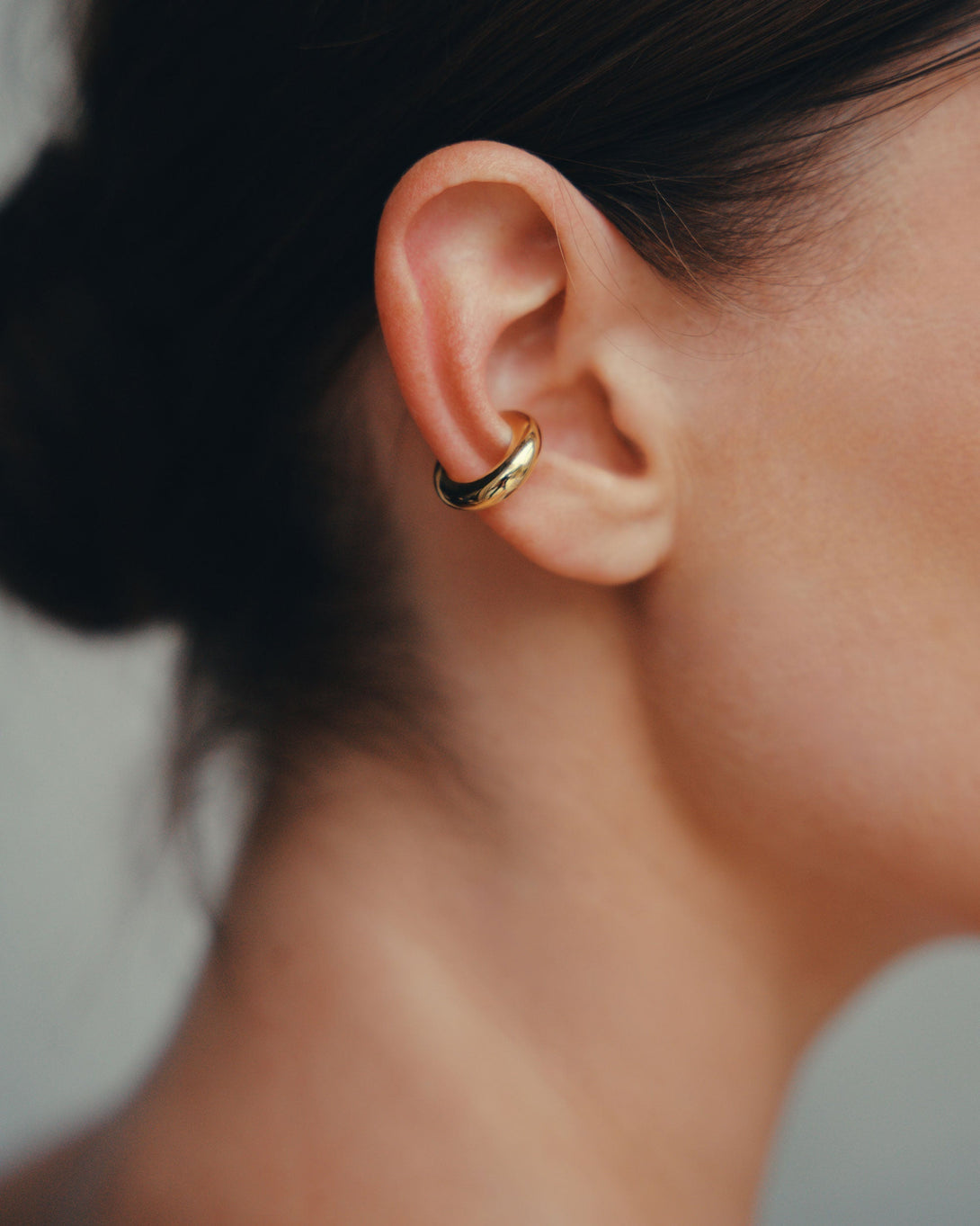 Our sophisticated take on the ear cuff trend. The Maia Ear Cuff offers a sleek, modern aesthetic with a timeless appeal. Its smooth, polished surface slides right on and sits low on your ear. Perfect for stacking with the or wearing alone, the Maia Ear Cuff requires no piercing.