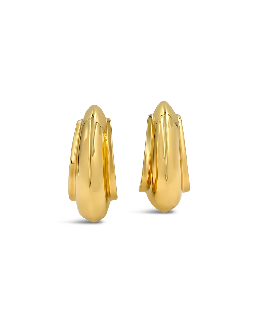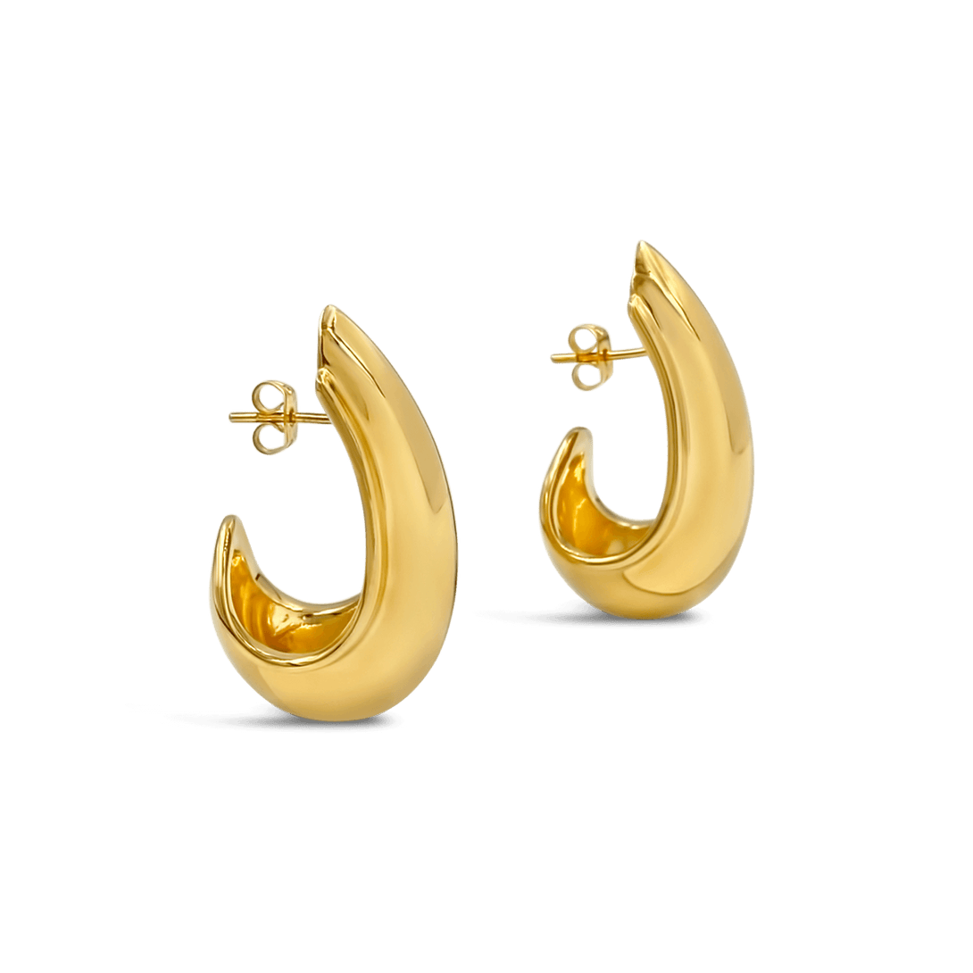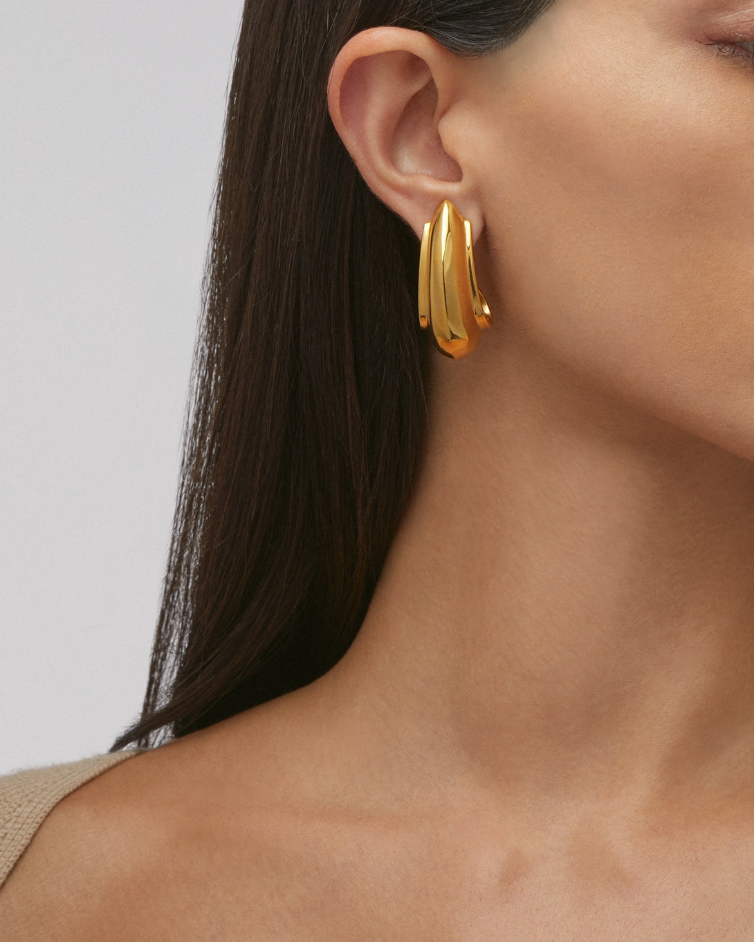 A sculptural and chunky twist on hoop earrings without the weight. The slight teardrop shape is lightweight, bold and elevates any look.