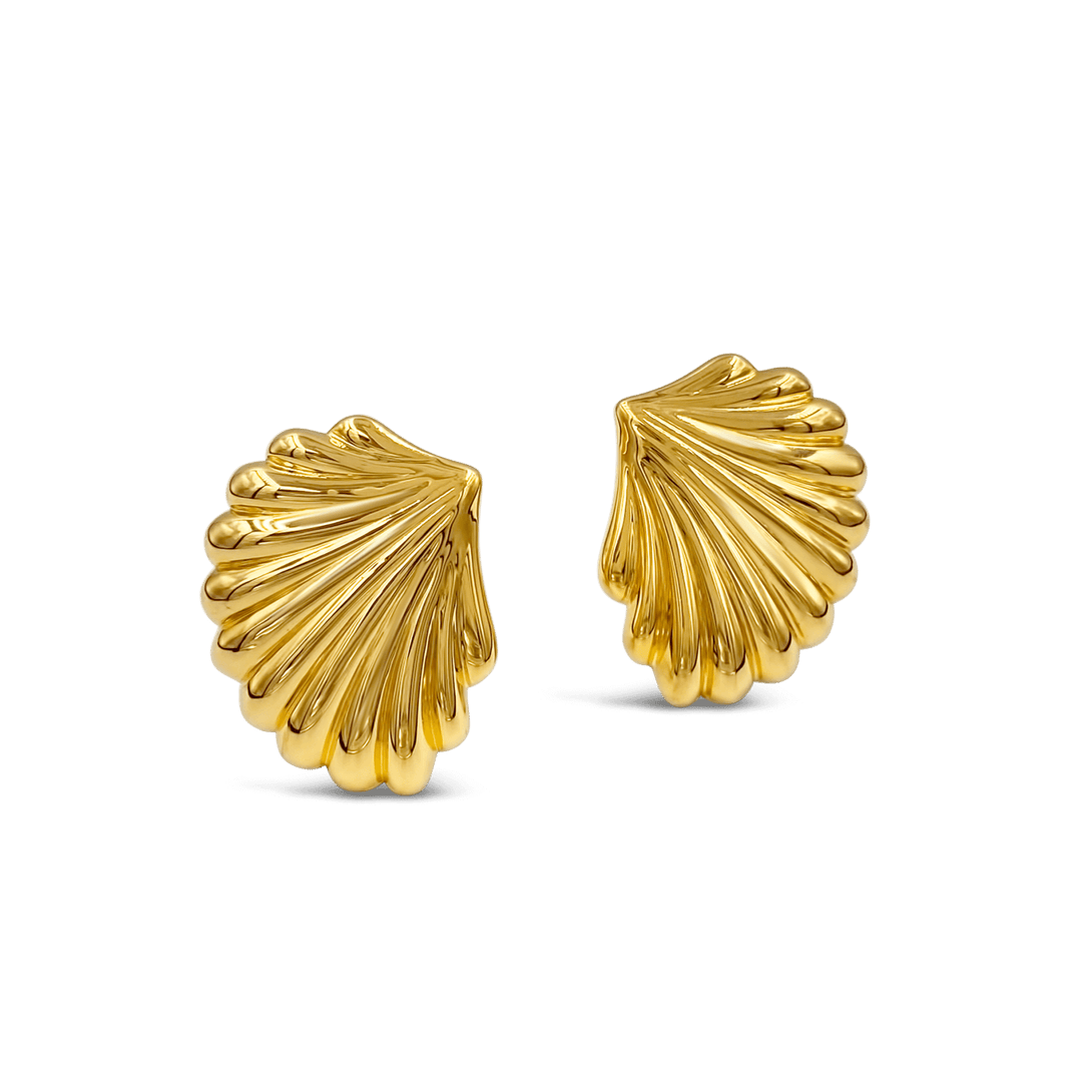 Bold, gold and vintage inspired - these are the Thea shell earrings. Lightweight to wear from day to night.