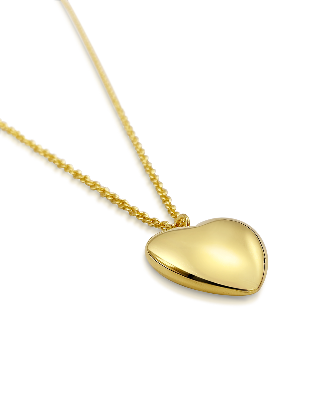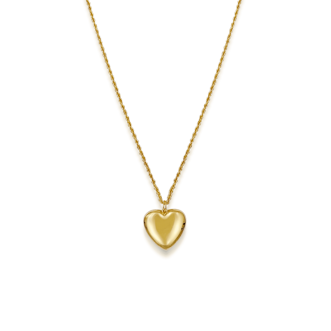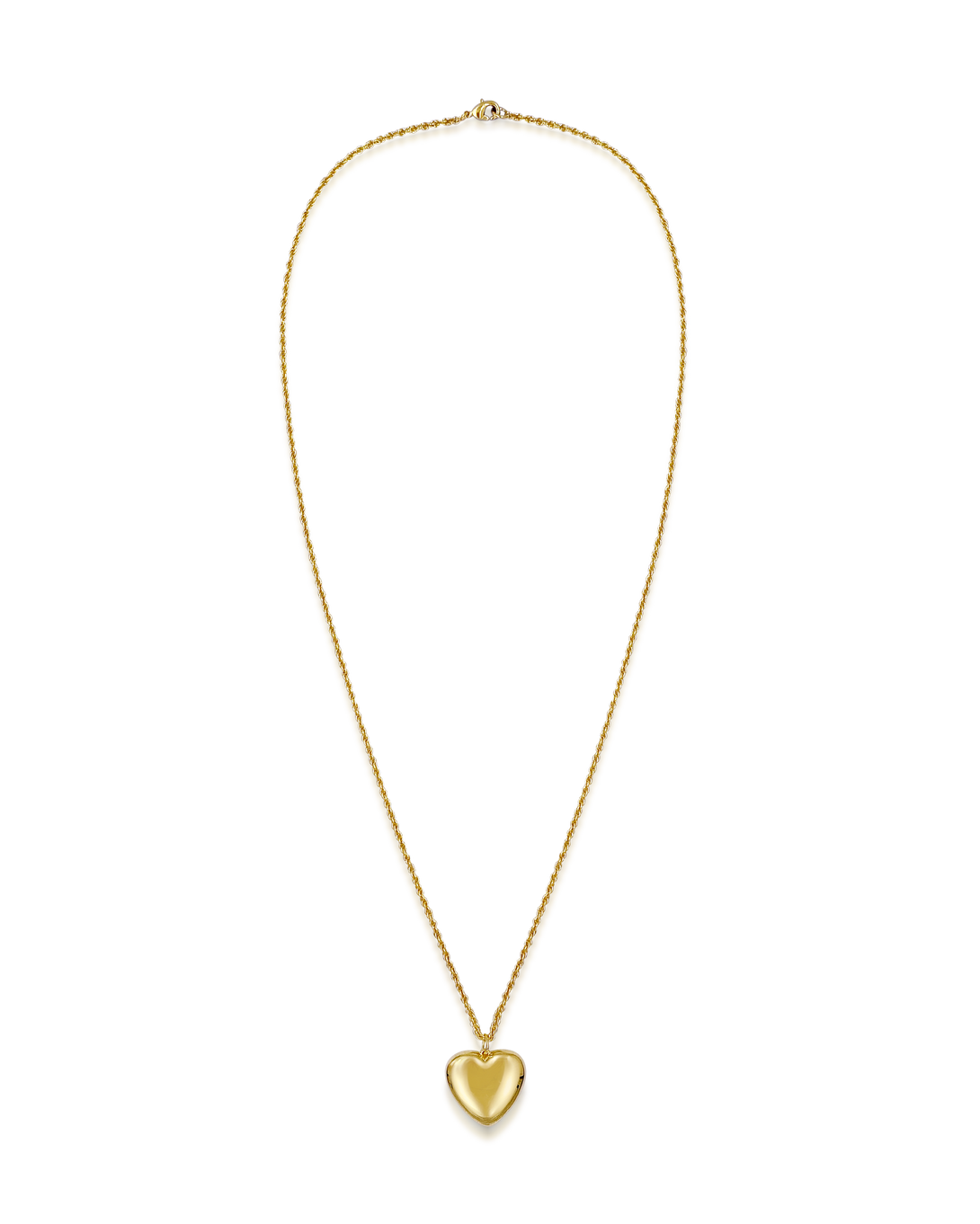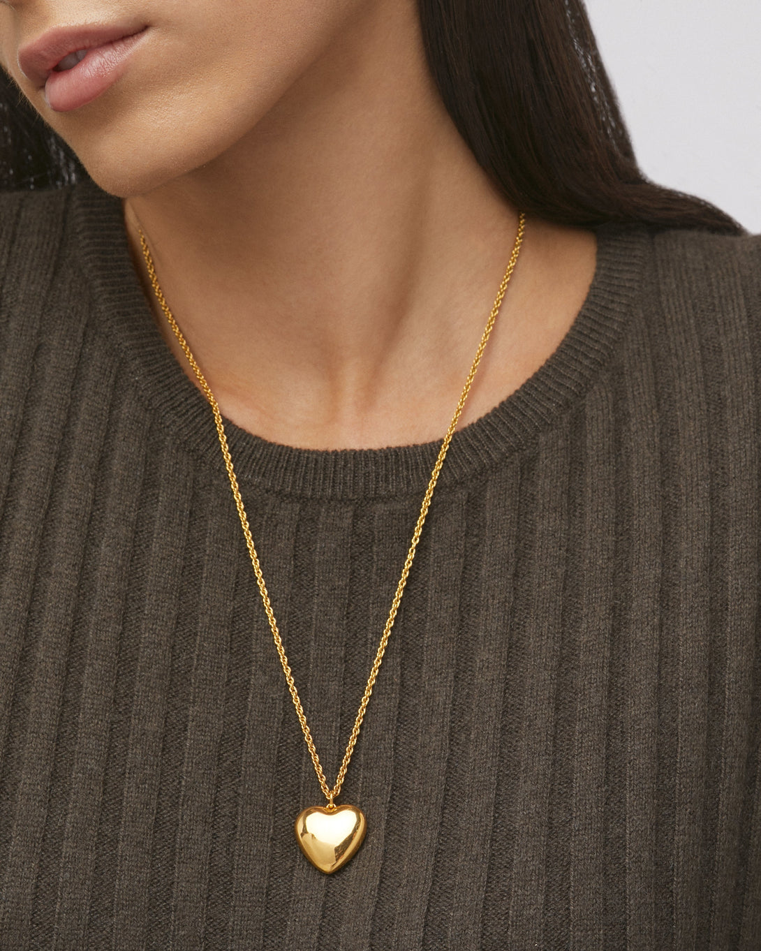 A classic loveheart for timeless loves. A solid, thick heart plated in 18ct gold and dangling from a long chain to give it a bohemian sensibility.